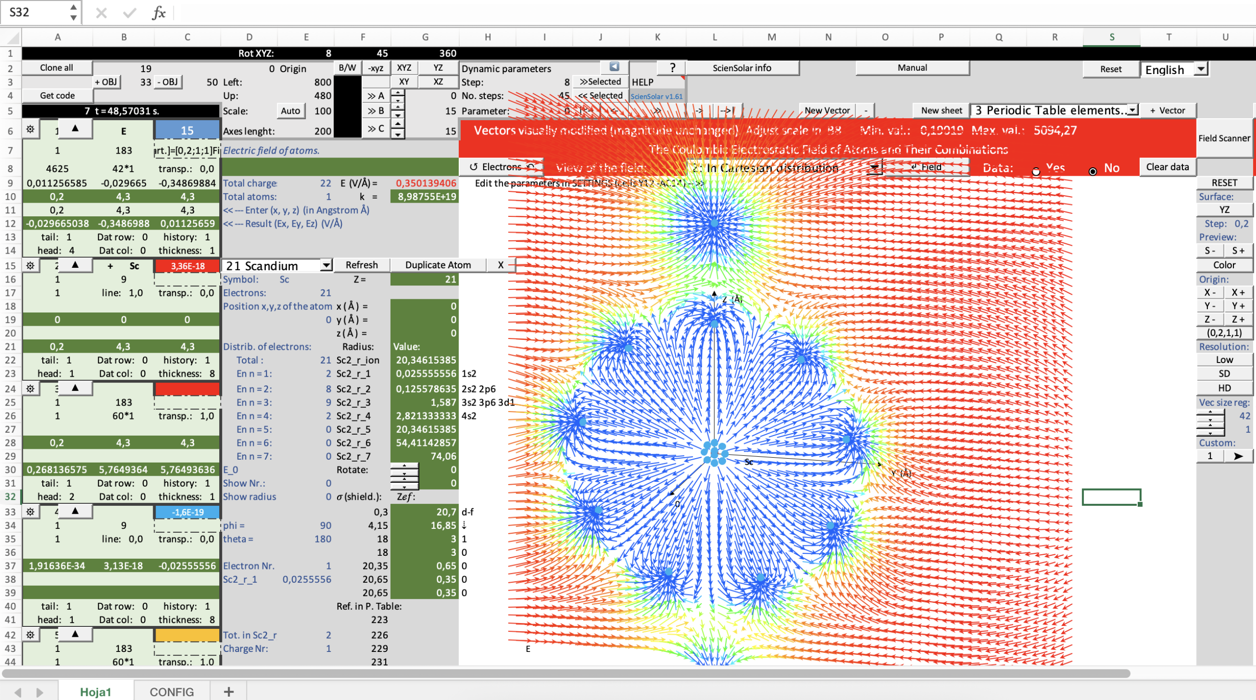 La idea es sorprendentemente simple: representar núcleos y electrones como cargas eléctricas y calcular el campo eléctrico usando la ley de Coulomb. Todo dentro de Excel, sin necesidad de software especializado.
